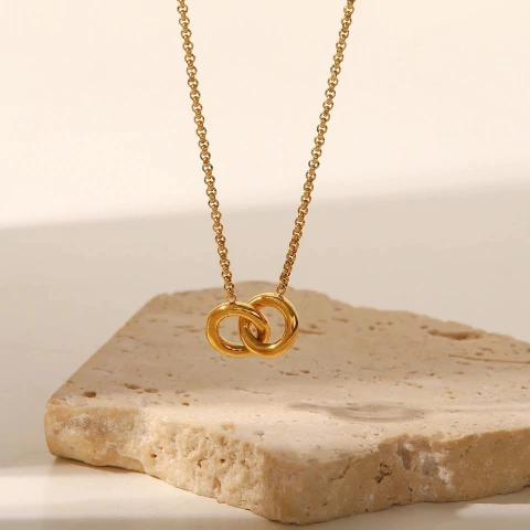 collar con colgante de aros de acero inoxidable entrelazados, cadena chapada en oro de 18K, a prueba de agua